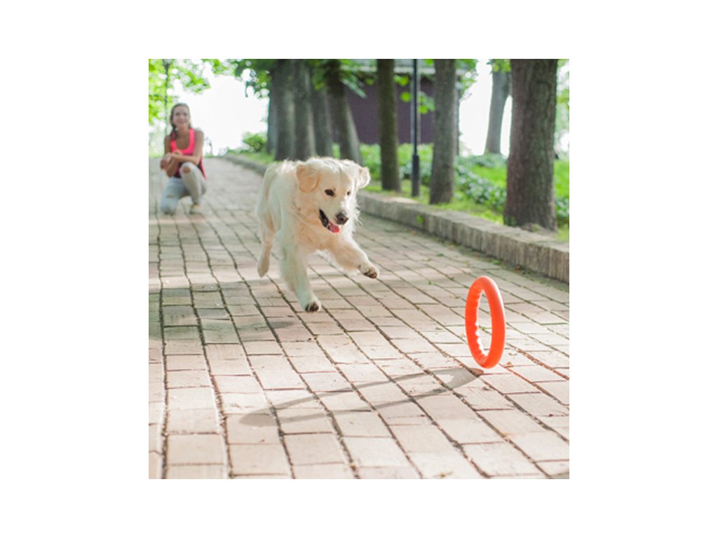 - kruh doďte tak, aby se kutálel, ne jako frisbee, pro psa bude kutálející se kruh více atraktivní a pohodlnější a zároveň bezpečnější pro uchopení v pohybu.